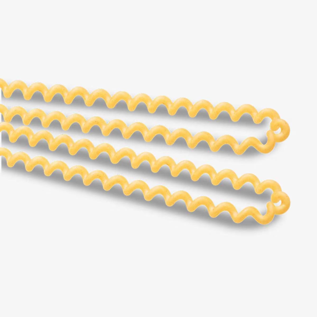 旋風長條麵起源於義大利坎帕尼亞地區,具有細長且中空的螺旋外形。製作時需以熟練技巧將麵條纏繞於編織針上,是搭配那不勒斯肉醬或茄子、甜椒等蔬菜醬汁的絕佳選擇,能充分吸附醬汁並展現豐富口感。